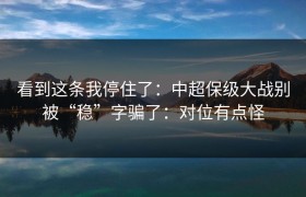看到这条我停住了:中超保级大战别被“稳”字骗了:对位有点怪 导语 最近的中超保级大战里,场上...