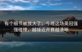 有个细节被放大了:今晚这场英冠强强碰撞,越接近开赛越清晰 今晚的英冠赛场,将再度迎来两支在积分榜上并...