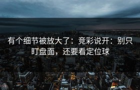 有个细节被放大了:竞彩说开:别只盯盘面,还要看定位球 在竞彩的世界里,盘面和赔率常常成为人们的焦点,...