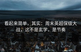 看起来简单,其实:周末英超保级大战,这不是玄学,是节奏 作者:资深自我推广作家,专注英超战术与心态解...