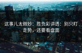 这事儿太微妙:胜负彩讲透:别只盯走势,还要看盘面 在胜负彩的世界里,很多人喜欢追逐“走势”的热度:最...